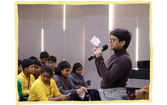 In the meantime, Soham Guha organised the science fiction workshop, where friends from class 8 introduced to the multifaceted, multidisciplinary, multidimensional, and multicultural world of science fiction and fantasy. Students were introduced to concepts of worldbuilding, characterisation, narrative structure, and cohesion, along with paradigms of epistemology and etymology, for topics relevant to the secondary and concurrent worlds. Alongside, the interactive session also engaged in storytelling techniques involved in many popular books, video games, TV series, and movies.