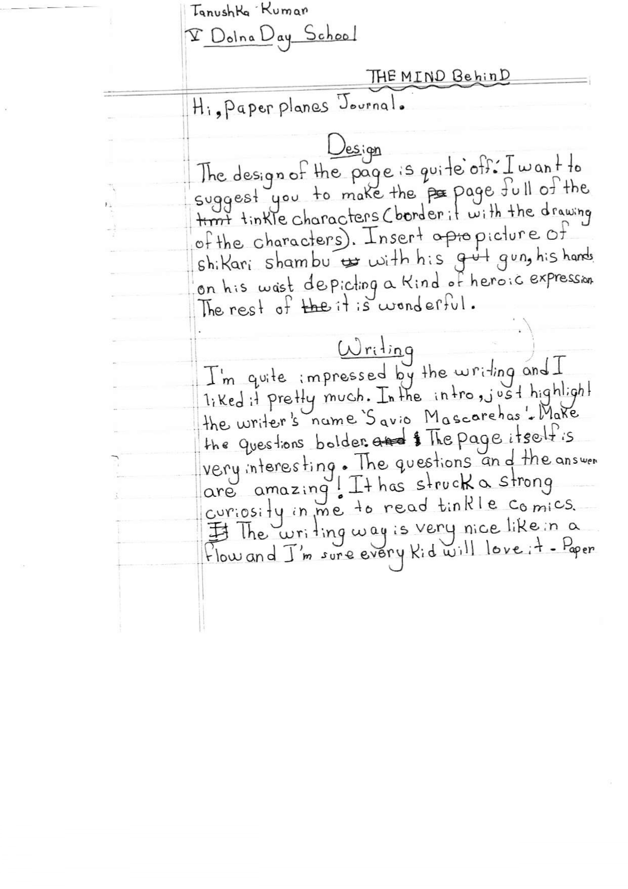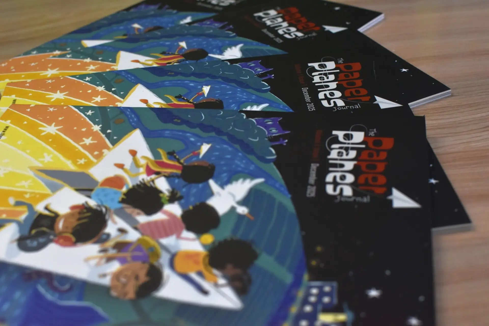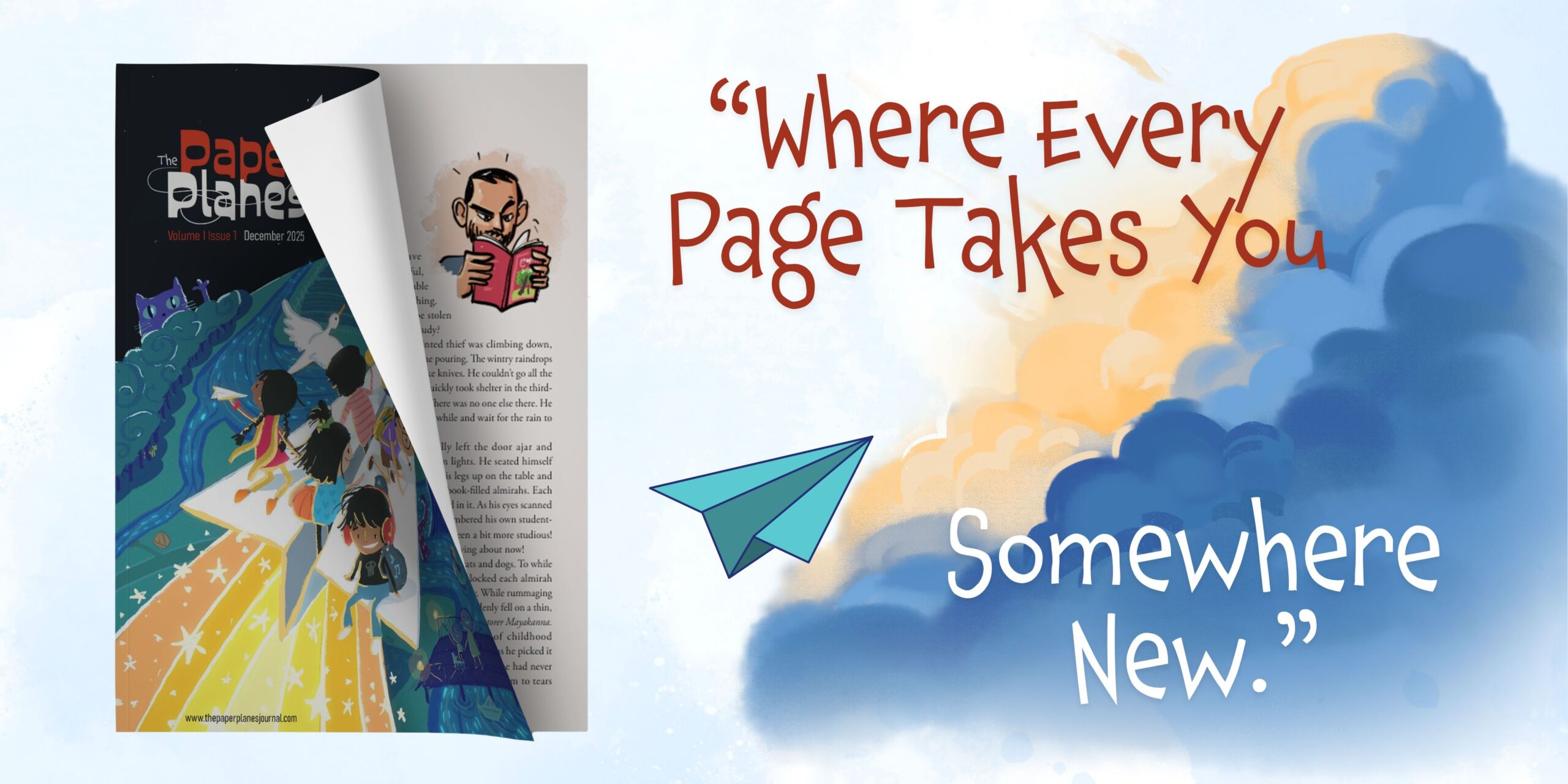 The first issue of The Paper Planes Journal features over 60 pages of fun and thoughtful content for curious and creative minds—from humorous stories and thought-provoking poems about travel, lifelong pets, bookworm thieves, and curse-filled forests to discussions on gaming, food, mental health, art, and many others.